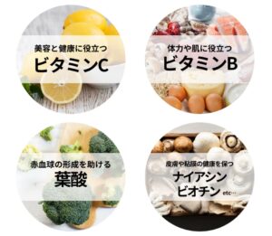 美容に役立つビタミンBだけでなく、ビタミンAビタミンEも配合、総合的に機能します。