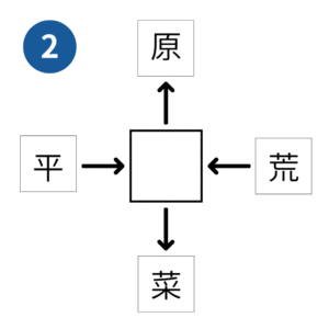 ▢に漢字1字を入れて、矢印の順に2字熟語を4つつくりましょう。