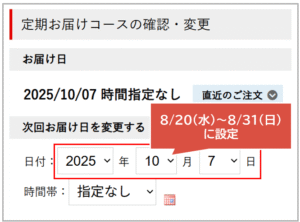 ③ 次回お届け日を、8/20(水)~8/31(日)のいずれかの日程に設定する