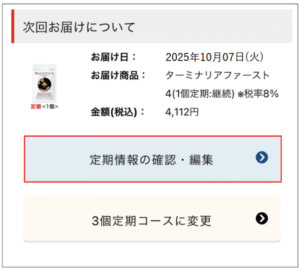 ② 「次回お届けについて」から、「定期情報の確認・編集」をクリック