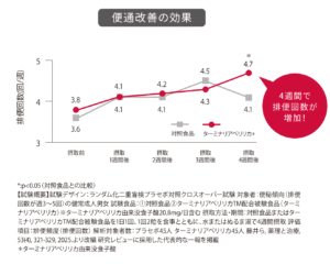 臨床試験では、4週間の摂取で便通頻度が増加する効果が報告されています。
