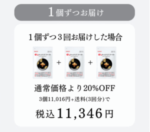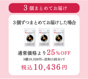 「お得な3個定期便」は、通常サイズ3個(120粒×3)を1度でお届けいたします。