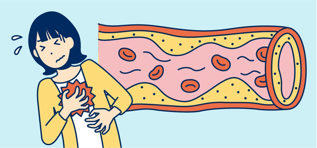 血管ダメージで動脈硬化が進行すると、心筋梗塞や脳梗塞などのリスクが高まります。