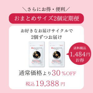 現在は30日ごとのお届けのため、60日ごとに変更いただくと、「ペースはそのまま」、「よりお得に」続けていただけます。