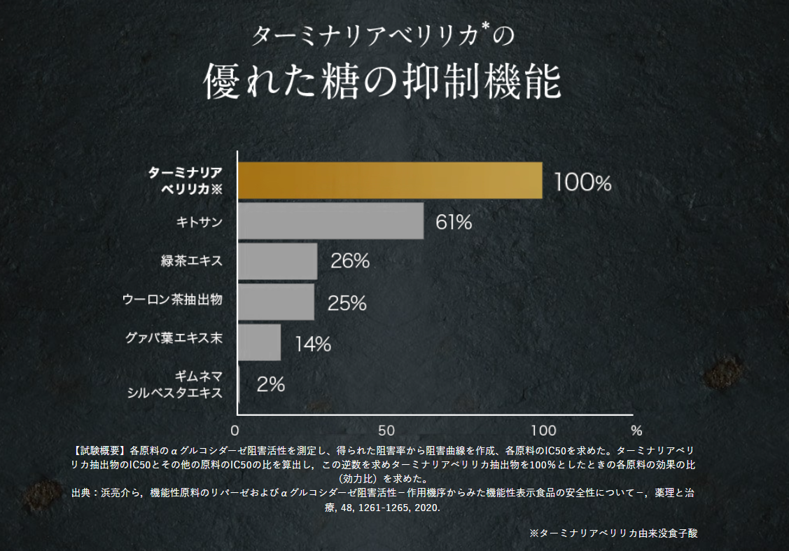 糖質を抑制してくれる成分は数多くありますが、ターミナリアべリリカ※4の抑制効果は他成分と比較しても優れているのです!