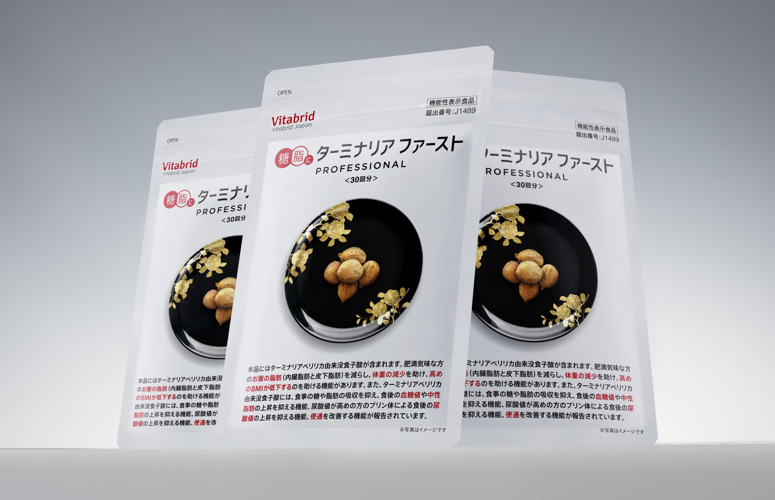 ターミナリアファーストの主成分「ターミナリアベリリカ由来没食子酸」は、食後の血糖値と中性脂肪の上昇を抑え、肥満気味な方の体重とおなかの脂肪を減らすのを助ける機能が報告された、機能性関与成分です。