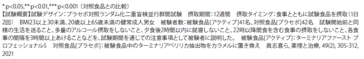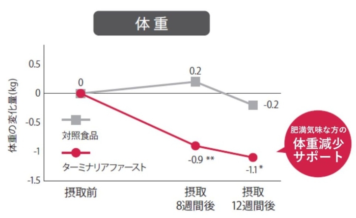 ターミナリアファーストは、継続摂取による臨床試験も行っており、ダイエットへのサポート効果もきちんと確認されています。