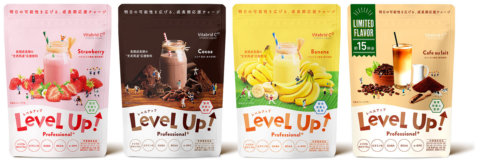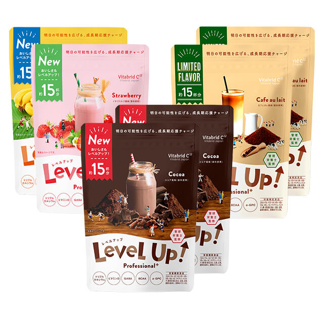 〈レベルアップ〉は1日1杯*1を目安にお召し上がりいただくことで、成長期*2に不足しがちな栄養を補うことのできる食品です。お子さまの様子に合わせてお召し上がりください。もちろん大人の方も日々の栄養補助としてお飲みいただけます。
